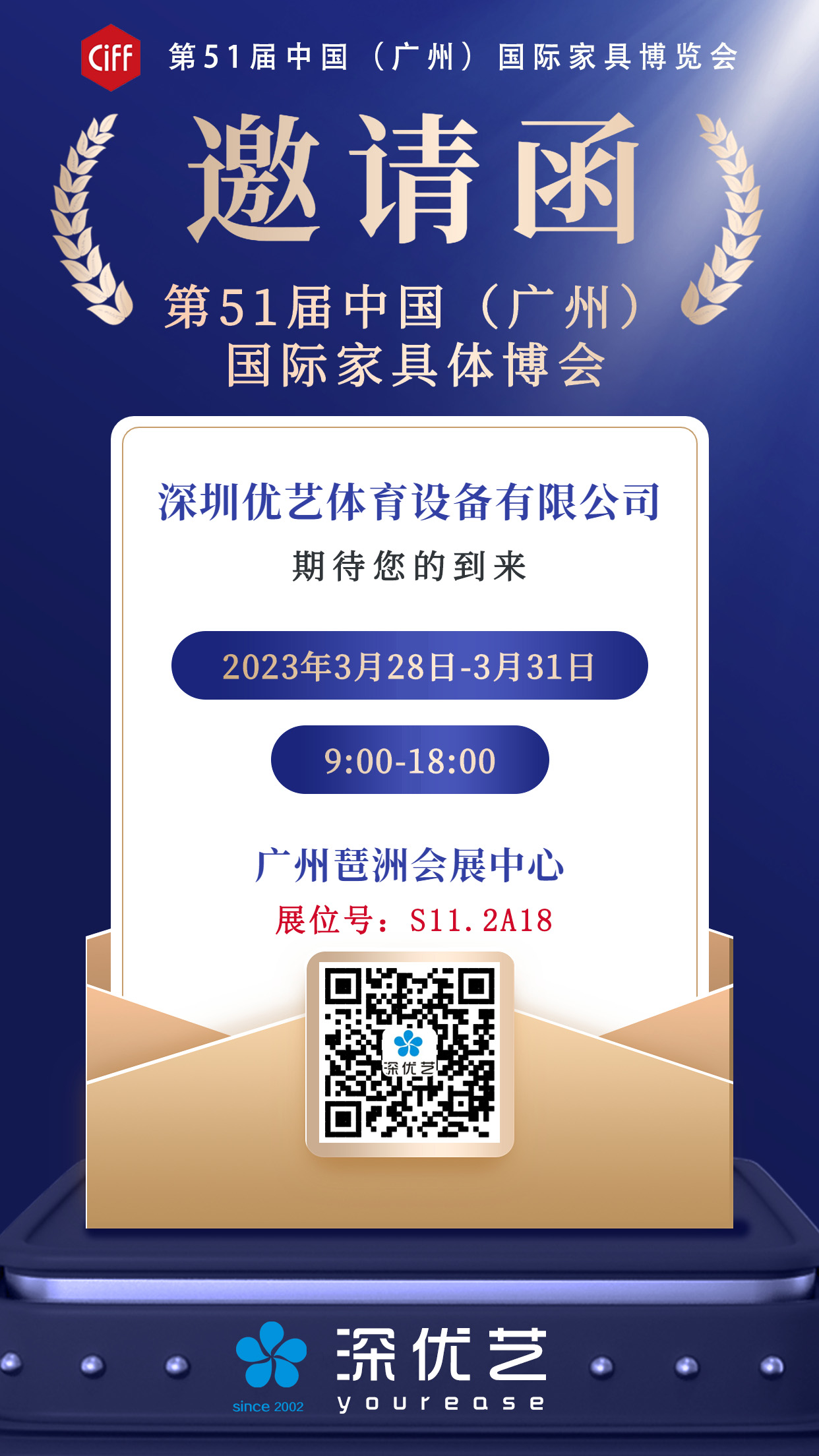 【邀請(qǐng)函】我們在第51屆中國(廣州)國際家具博覽會(huì)廣交會(huì)展館展位(S11.2A18)等您!